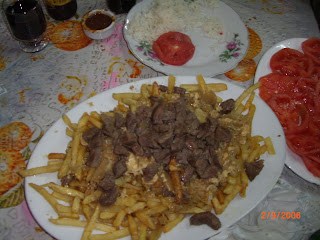 This plate consists of really really greasy french fries, grilled onions with melted cheese and then pieces of the tastiest steak ever! It was literally the best thing I have ever eaten!